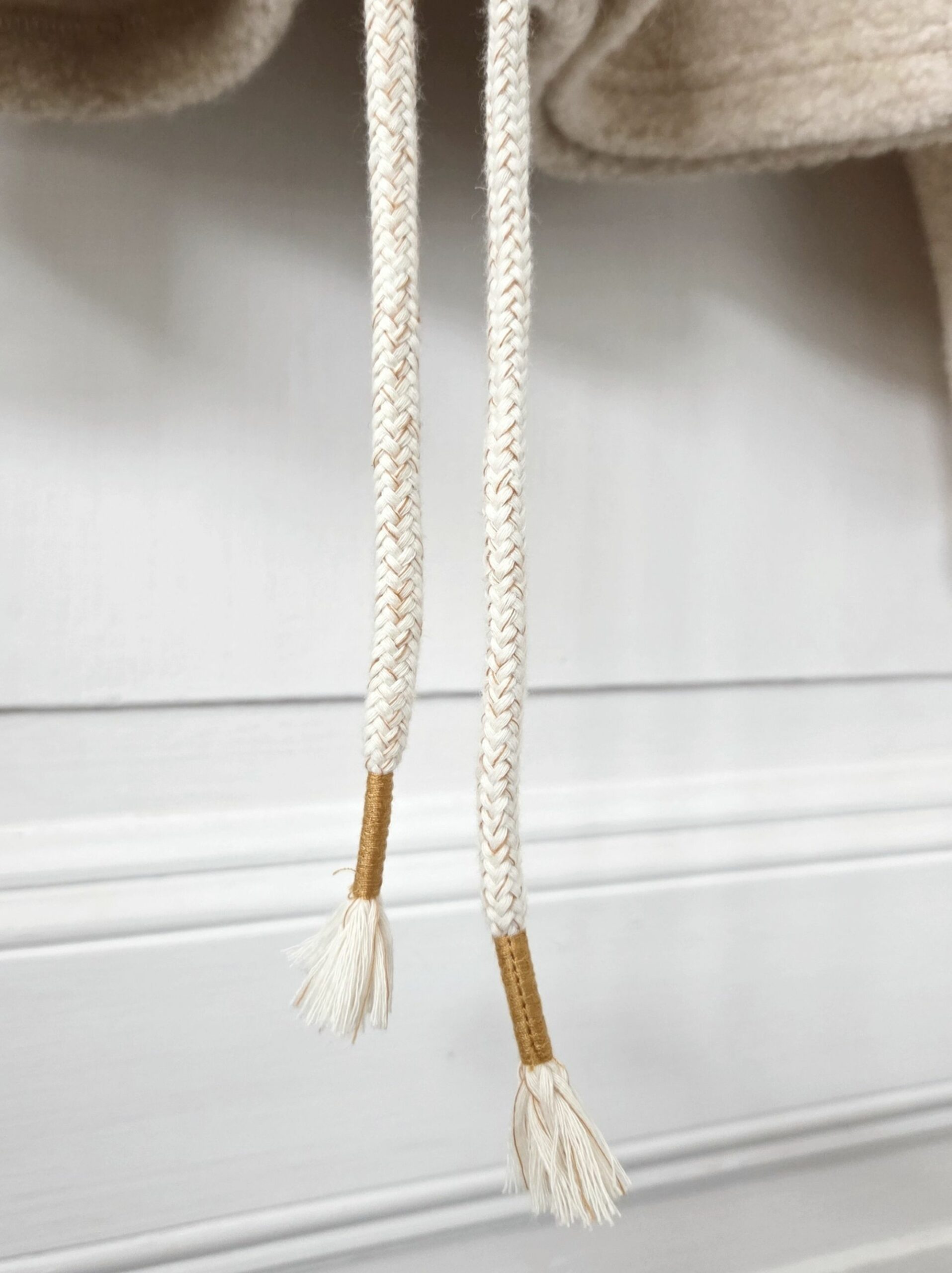 Le modèle se resserre à la taille grâce un cordon couleur crème.